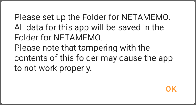 As an initial setting, you need to set up a "Folder for NETAMEMO".
