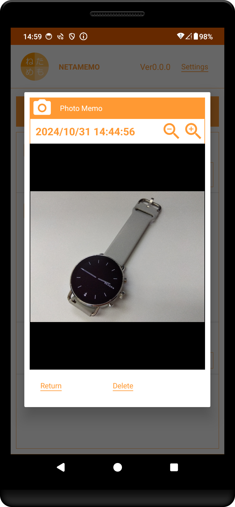 When you take a photo, a photo memo will be created with the photo and you will return to the main screen. The memo will be added to the top of the main screen.